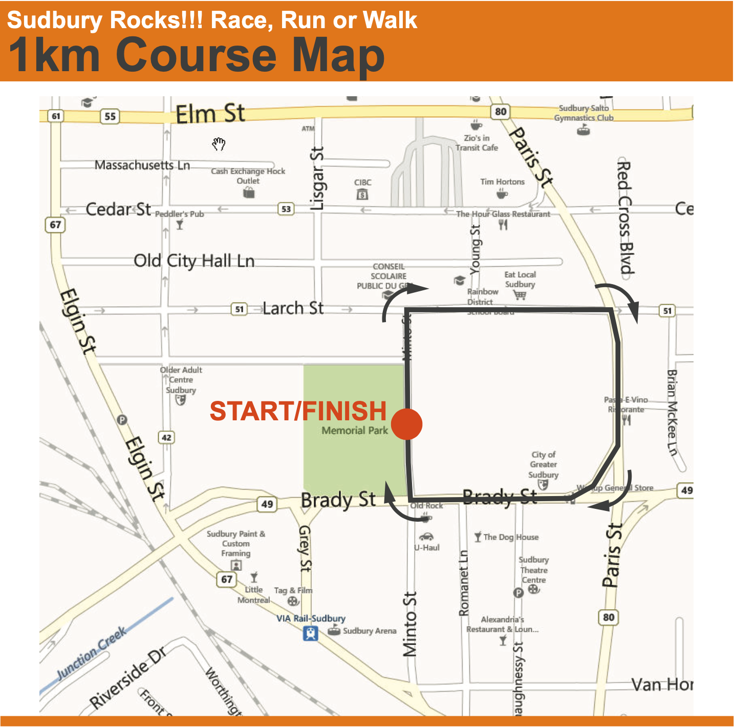 1km - Participants must be able to complete the course in 15 minutes. This will allow organizers time to prepare for the upcoming events.