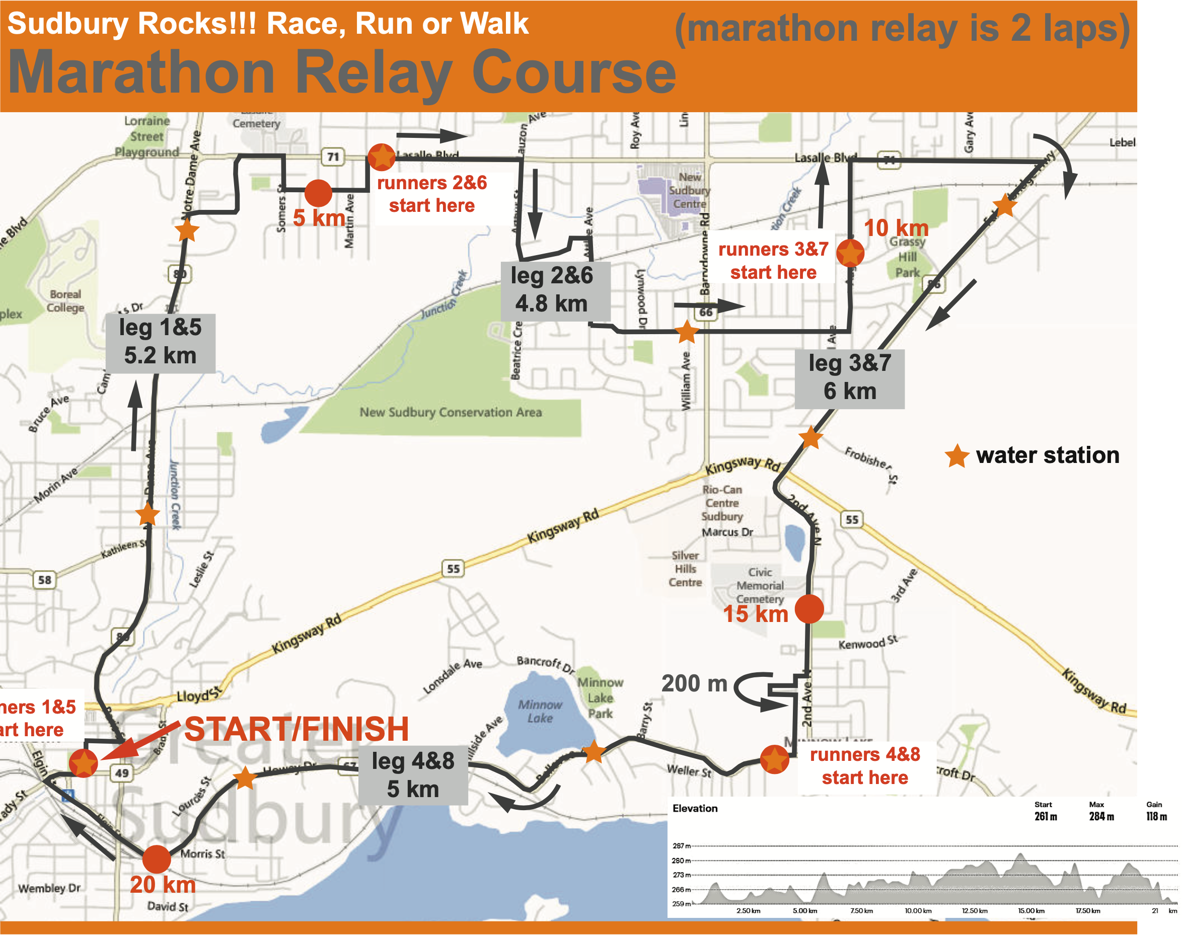 2. Relay #2 (4.6K) Runs from Lasalle/Starlight  to St. Bernadette School 870 Auger St (park in lot at the 2nd school entrance)